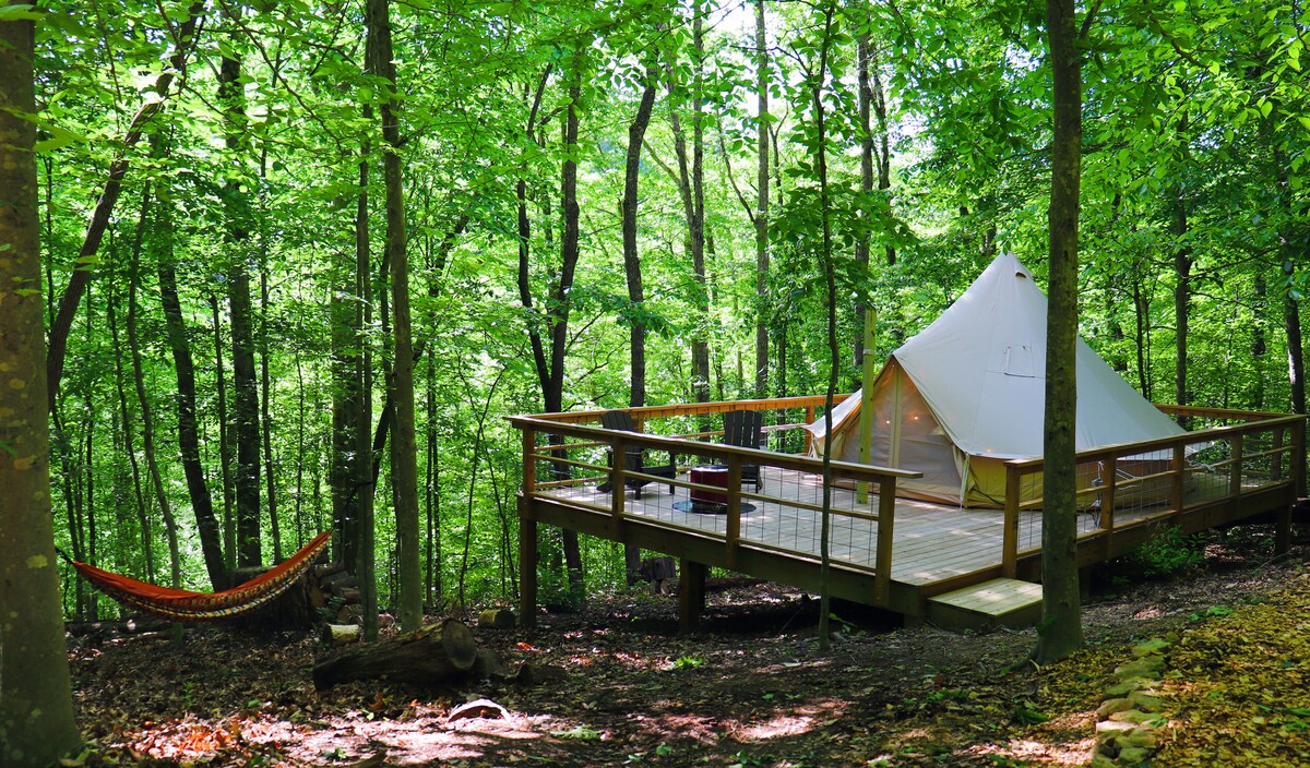 在大自然中享受極致的舒適。我們的16英畝房源是完美的浪漫度假勝地,或在新河峽谷國家公園(New River Gorge National Park)度過一天後放鬆身心的好地方。您的16英尺鐘形帳篷配備齊全,設計精美,為您著想。您將享受一個帶有Solo爐的大露臺,您的位置距離任何其他露營者超過75英尺。由於您的帳篷有電源、空調、毛巾和床上用品等一系列設備與服務,您只需抵達集合地點就行了!抓住吊床,放鬆身心。