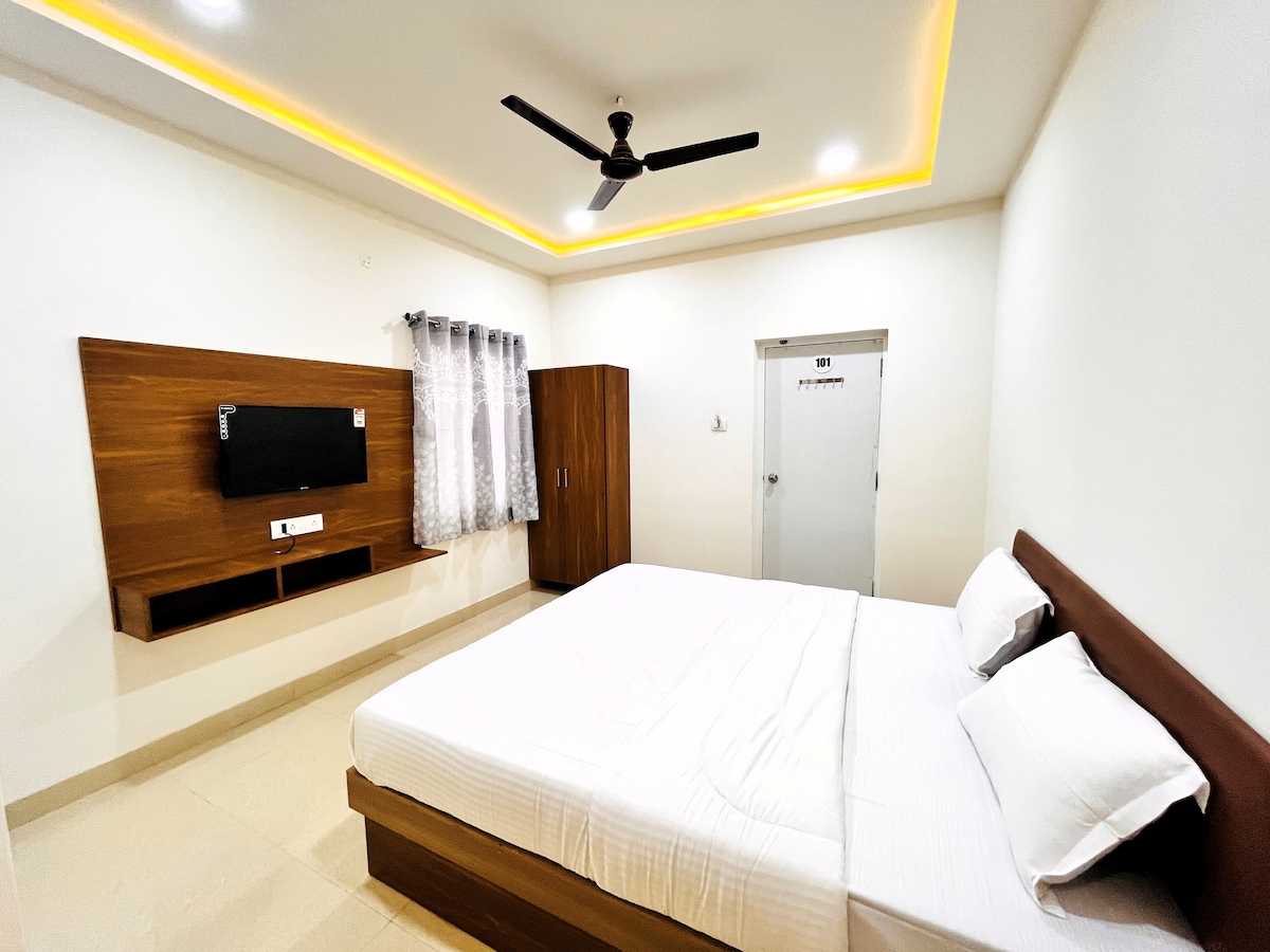歡迎來到我們位於市中心的2BHK公寓! 我們的寄宿家庭坐落在一樓,在城市中心提供便利和舒適。 距離巴士站僅200公尺,輕鬆探索這座城市。 步行500公尺即可抵達主要市場, 200公尺內即可輕鬆抵達汽車人力車。 公寓包括兩間房間、一間維護良好的浴室、一間舒適的廚房、客廳和用餐區域。 在您住宿期間與我們一起體驗便利和舒適!