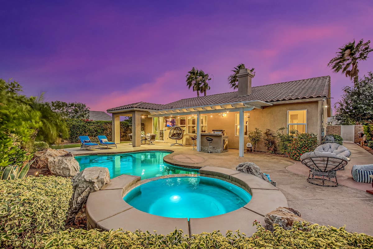 體驗沙漠,欣賞聖哈辛托山的景色。 我們的度假屋配備了您所需的一切,讓您與親友一起放鬆和玩樂。 ✓ 聖哈辛托山景和沙漠景觀 ✓ 溫水泳池和水療中心(需額外付費) ✓ 迷你高爾夫球場 ✓ Tiki酒吧 ✓ 戶外用餐區 ✓營火區和休息區 烤✓ 肉架 ✓ 內置室內/室外音響系統 ✓ 設備齊全的廚房 ✓所有房間均配備電視,可觀看Hulu和Disney + 距離棕櫚泉市中心、Cabazon和賭場✓20分鐘 ✓ 30分鐘即可抵達約書亞樹