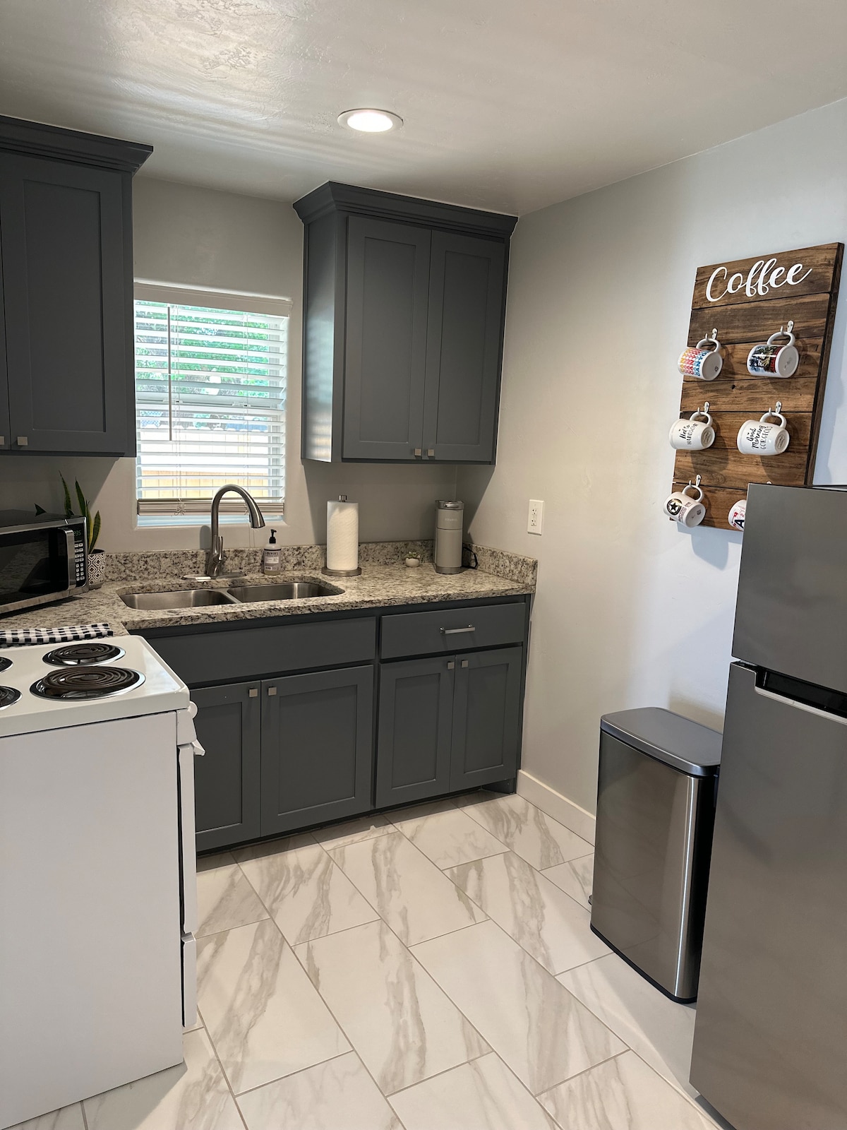 An incredible and intimate space with vaulted ceilings, a curated garden, and hand-painted floors. Not a single detail has been overlooked in the creation of this beautiful guest studio apartment. Enjoy evenings on the patio, surrounded by the warm glow of bistro lighting or whip up a delightful breakfast in the fully stocked kitchen for a comforting, slow morning. This home is the perfect place for deep relaxation, thoughtful meditation, or just a simple escape from busy life.