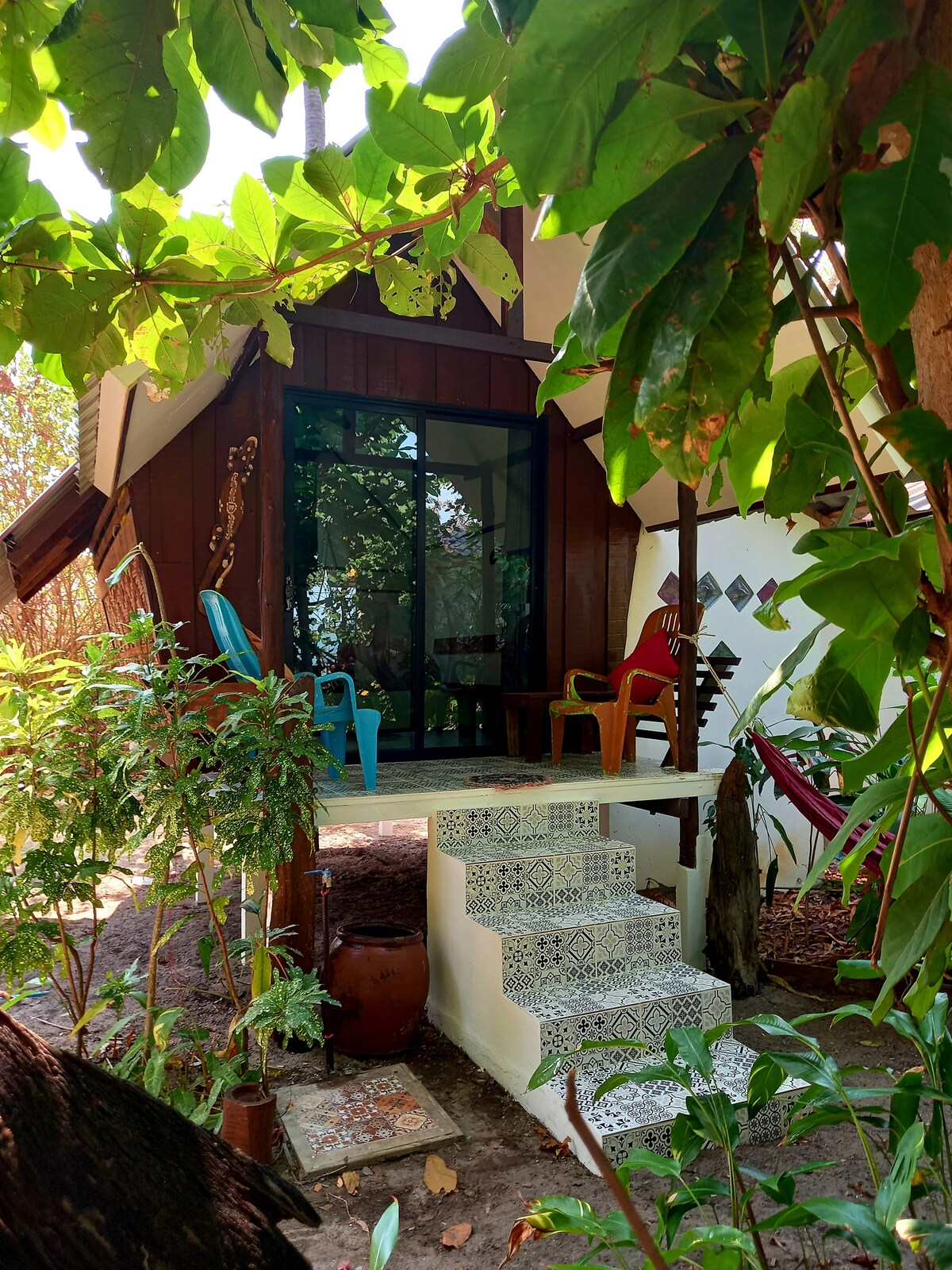 傳統2層平房@ Sabai Sabai Guesthouse ,充滿愛心,沐浴在陽光下:)花園環境和部分海景中的3號平房,距離充滿吊牀的舒適陽臺僅20公尺,四周環繞著美麗的大自然