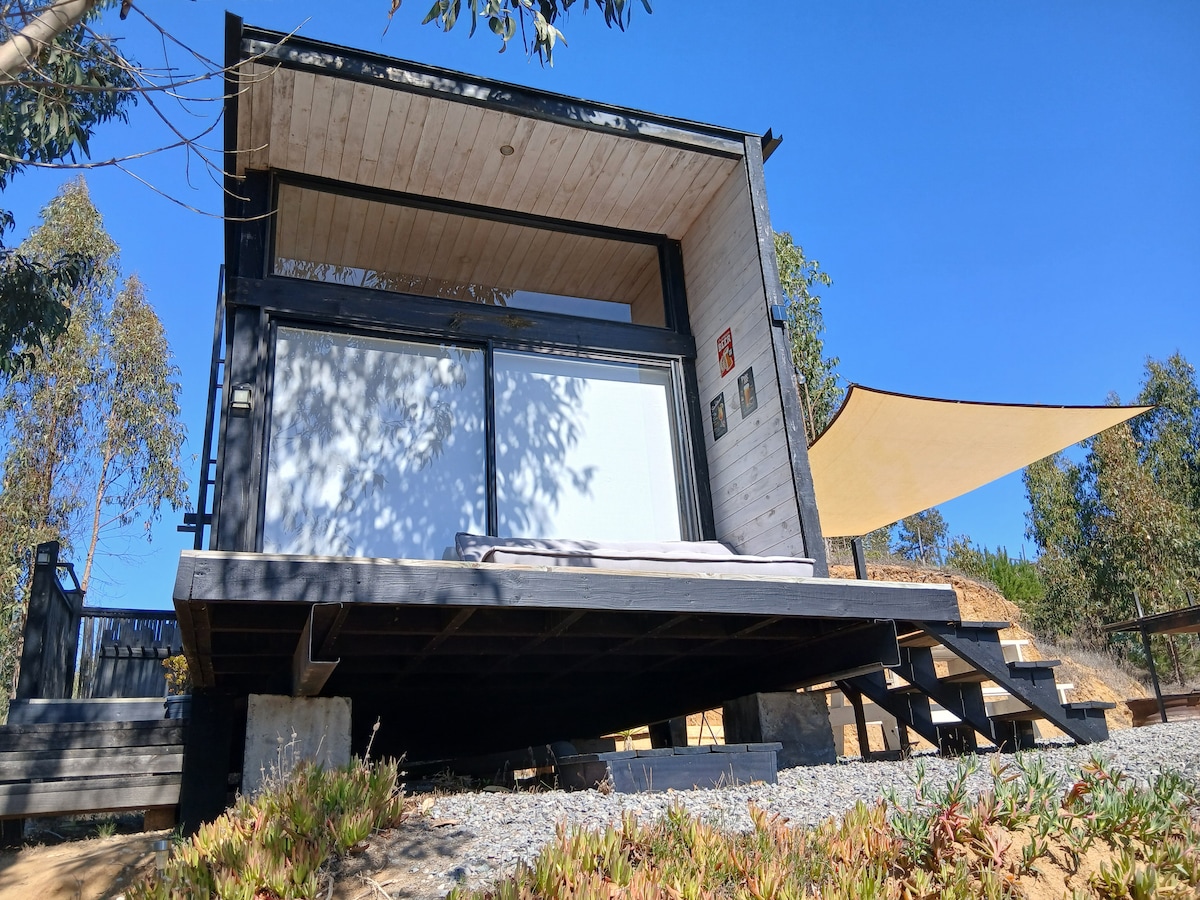 來這裡距離海灘僅3分鐘路程(開車) ,坐落在俯瞰大海的迷人小屋,坐落在配有電動門的公寓內,是一個非常安全的地方,四周都是小徑、樹木和自然景觀。 雙人床在閣樓上。(包括寝具) 大型飲料有額外的飲用水。 烤肉架和爐子。 乘坐任何類型的汽車都很容易到達,有一個非常大的停車場。 *不包括毛巾。