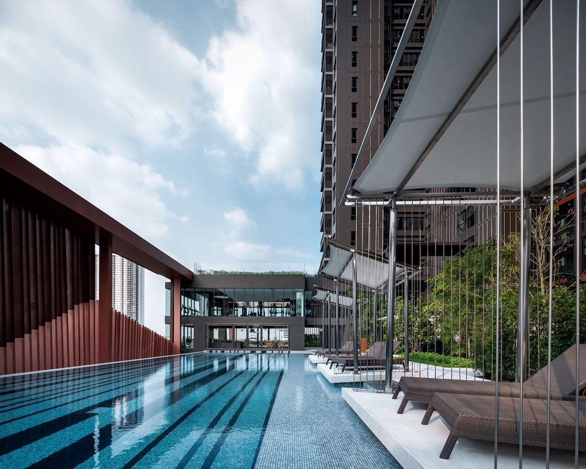 現代化62平方公尺服務式公寓,配備泳池,位於素坤逸區的伊卡邁