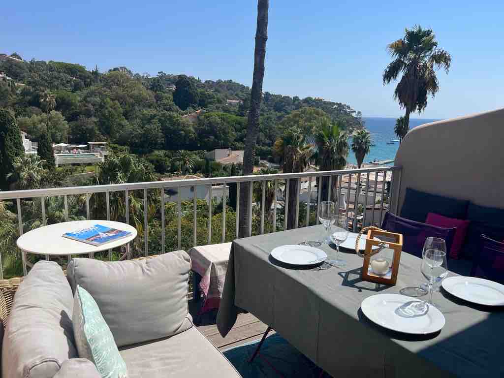 非常漂亮的海景和海灘景觀以及毛雷斯山脈 公寓位於小型公寓的二樓和頂樓,距離Canadel海灘不到50公尺。 進出,步行是安全的。 它包括:天花板高度漂亮的客廳、設備齊全的廚房、浴室(浴缸)、帶淋浴間的主臥室、第二間臥室(包括牀單、毛巾)。 15平方公尺的木製露臺是開放式的(可提供plancha )。