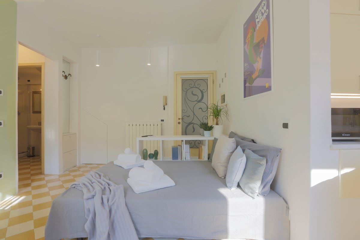 明亮的新公寓,位於盧卡歷史中心,提供各種舒適感,一間臥室配有可伸縮式上下舖和一張沙發牀,配有一間浴室,配有淋浴間,非常適合4人入住,最多可容納6人。