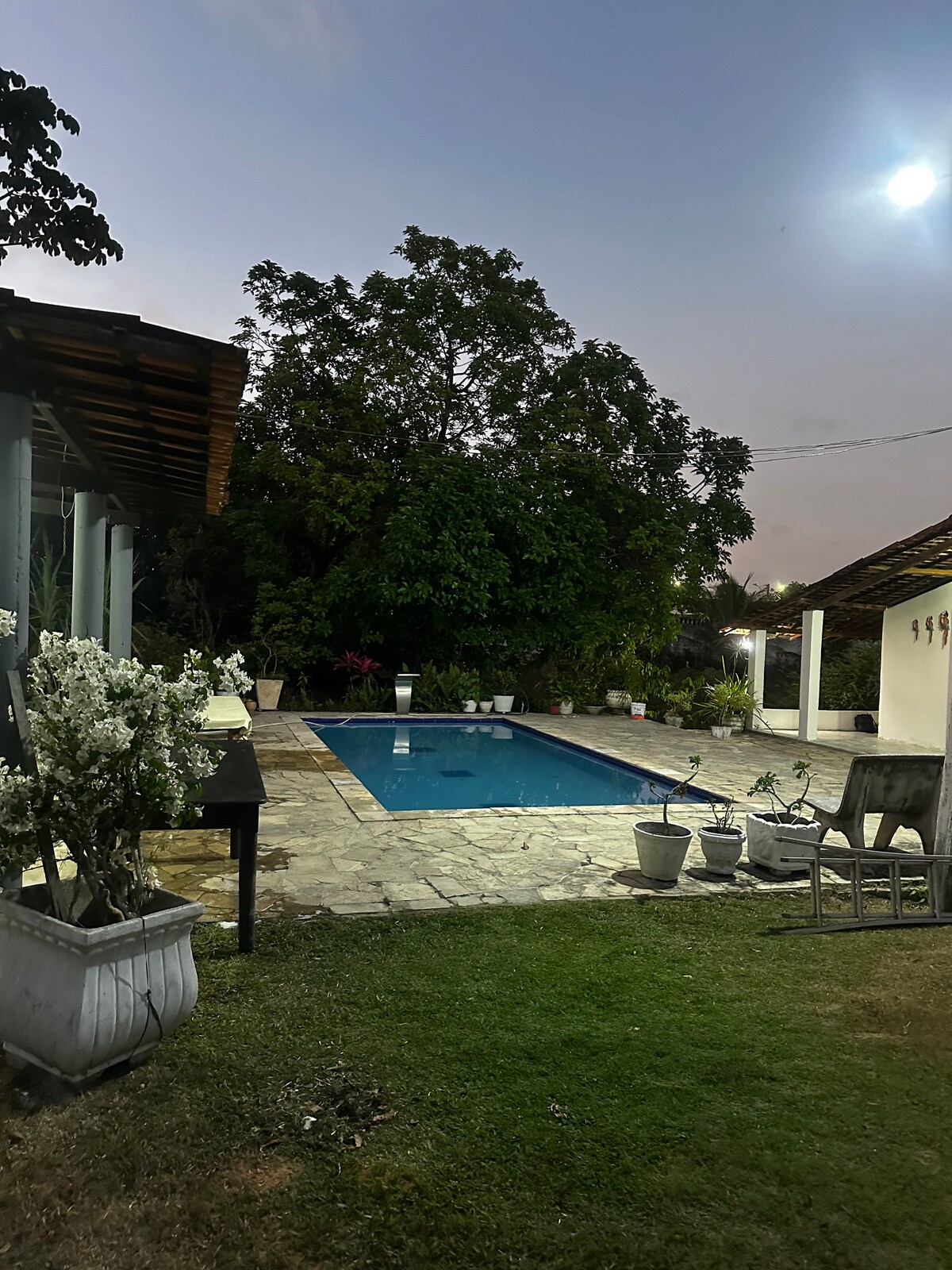 Relaxe com toda a família nesta acomodação tranquila. com Piscina Privativa", com "WiFi, Vaga de Garagem Grátis, com árvores frutíferas ideal para descansar, se divertir 2 quartos, sendo um suite, cozinha, sala, banheiro, terraço amplo com redes, área de lazer, churrasqueira, garagem com espaço para 20 carros ou mais.