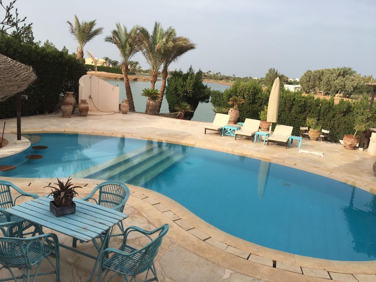 Views of the Red Sea, our apartment comes with everything you need, including air conditioning, bottled water, tea & coffee, & set behind the villa. The pool is shared with the owners, a retired couple from the UK, friendly dog Dotty & occasionally their family, but with plenty of space to relax, and take in the sea air. At the bottom of the road is a secluded beach for the residents, it’s always very quiet, with a lagoon to swim in. The compound is very close to amenities & the centre.