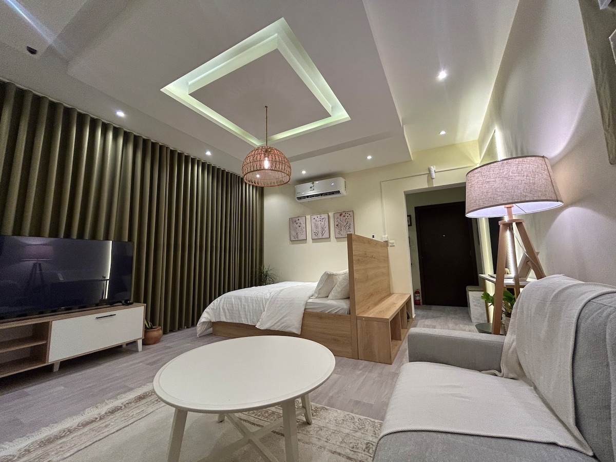 دار الهنا استديو أنيق وهادىء مصمم ليمنحكم الراحة والخصوصيه مناسب للعائلات الصغيره والأفراد، بتجهيز انيق وأجواء دافئة ليجعل إقامتكم مريحة من أول يوم نحرص فيه على النظافة، الهدوء، والتفاصيل اللي تفرق