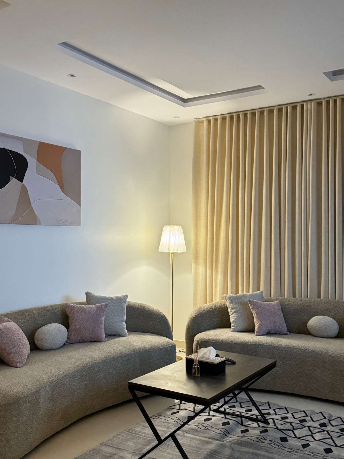 غرفتين نوم وصالة حديثة شاشة 75بوصة