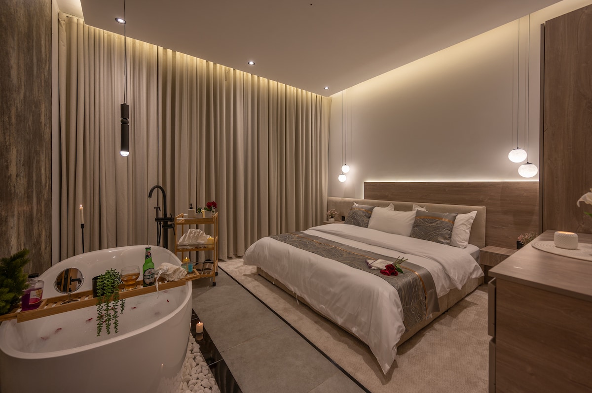 Live the peak of luxury in an elegant duplex loft in Al Rawdah, Jeddah — designed with a modern, sophisticated touch that offers complete comfort and privacy. Relax in your private jacuzzi and enjoy a cinematic experience on an 85-inch QLED TV. Perfectly located near Hamad Al Jasser Street, close to the city’s best cafés and restaurants. Includes private parking, free cleaning on request, and a professional team ensuring a seamless stay. Luxury Stay — where elegance meets comfort.