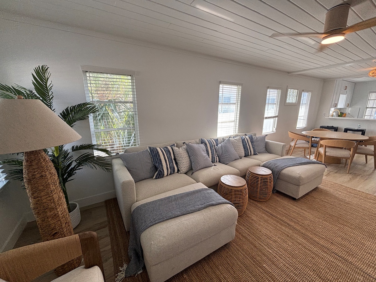 步行即可抵達海灘,非常適合情侶或家庭入住。 在路上,您可以在Kooky Koconut停留享用午餐、很棒的奶昔或各種小吃。 此單位在2019年全新翻修,非常乾淨且無憂無慮。 這間小屋位於一個安靜的住宅區,是放鬆身心的好地方。 共用門廊上的共用洗衣房。可攜帶狗(額外收取45美元清潔費)。簡單的退款政策。2級電動車充電器