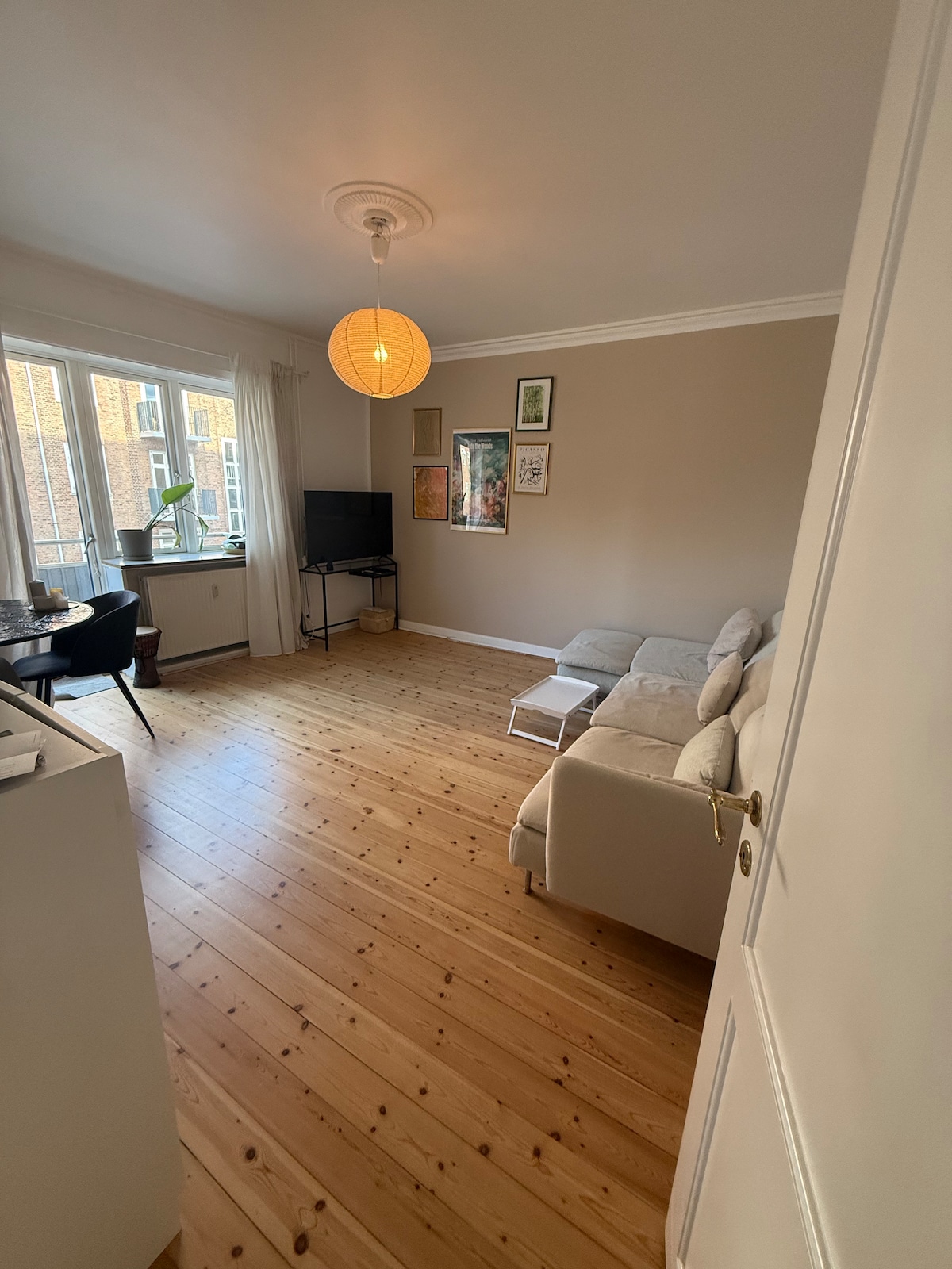 Nice bright apartment , 102 m2. The apartment contains 2 living rooms ensuite, fully equipped kitchen, large bedroom with double bed 180 x 220, lovely bathroom with shower. The apartment is located In Valby - 5 min by S-train to Copenhagen Central Station and in walking distance to shops, supermarkets, coffeeshops, Frederiksberg Have and Zoo.