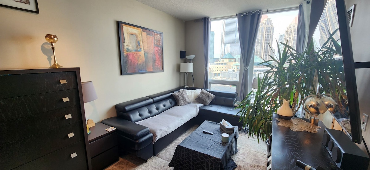 歡迎來到我們現代豪華的角落頂層公寓! 這個明亮的空間設計時尚,綠意盎然,高級感十足,提供舒適、優雅和輕鬆的熱帶氛圍。 欣賞迷人的城市全景,並享受頂級設備與服務,包括戶外泳池、按摩浴池和蒸汽房桑拿。 開車前往市中心僅需15分鐘。 大眾交通就在門口。開車10分鐘即可抵達羅傑斯體育場。 非常適合挑剔的房客,尋找多倫多充滿活力的城市核心的高級住宿