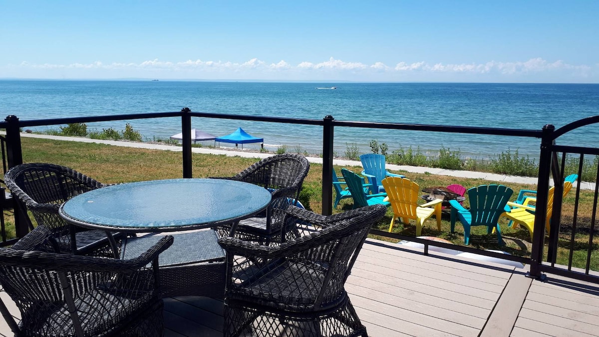 前往我們美麗的湖畔度假勝地,欣賞安大略湖的迷人景色。 享受豪華的石灰華石客廳,並在設備齊全的廚房中烹飪,配備不鏽鋼電器。 走到外面,前往3層石頭露臺,設有燒烤、火坑和熱水浴缸,非常適合日落和星空夜晚。 您可以完全獨享房源、燒烤、露臺、按摩浴缸和直接通往湖泊。 非常適合與朋友一起放鬆身心,度過難忘的假期。 執照號碼 26-000080
