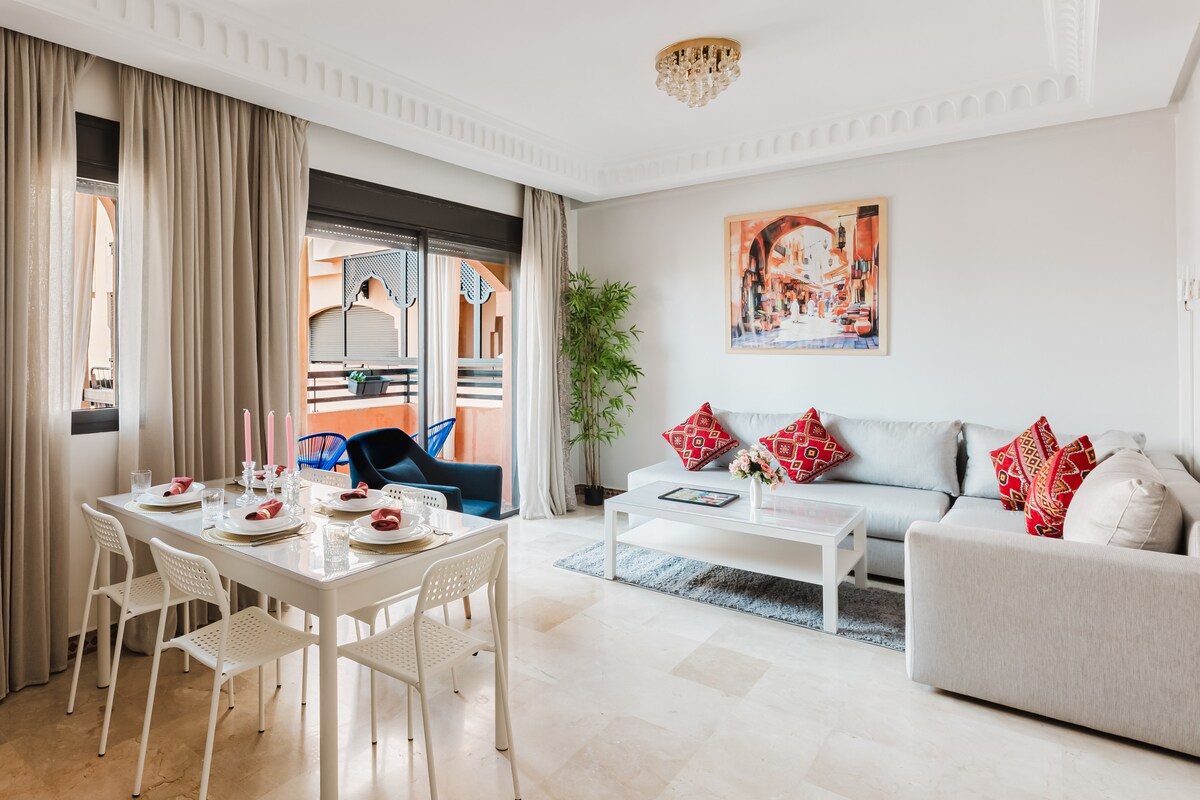 Transfer aeroporto gratuiti dall'aeroporto al riad. Autentica Residenza araba arredata con gusto dotata di plunge pool privata. Situata nel cuore di Marrakech dietro il Palazzo Bahia e a 10 minuti dalla vivace piazza Jemaa el-Fnaa 2 ampie ed eleganti camere da letto climatizzate con bagno privato. 1 soleggiata terrazza arredata, perfetta per rilassarsi Completano la proprietà una cucina interamente attrezzata, 1 salotto e 1 sala da pranzo Colazione pulizia giornaliera Wi-Fi sono inclusi