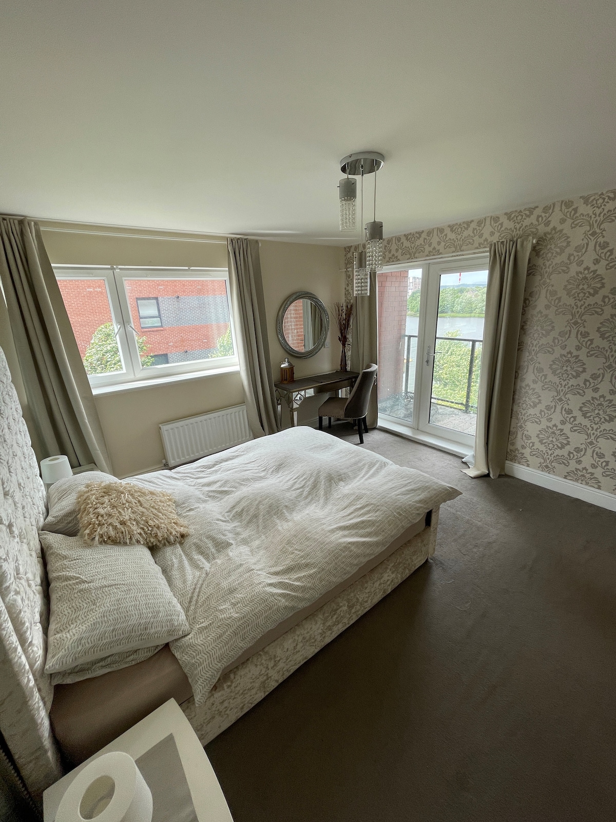 現代化的2間臥室、2間浴室明亮寬敞的公寓,裝潢非常高,配有超高速WiFi 大型開放式起居區,可俯瞰克萊德河的部分景觀。 位於適合遊客、探訪家庭或承包商的時尚區域,交通便利,當地設施極佳 路邊免費停車位 距格拉斯哥機場市中心和 SEC 15 分鐘車程,距洛蒙德湖和特羅薩克斯 45 分鐘車程,距布雷黑德購物、休閒和娛樂中心 3 分鐘車程。