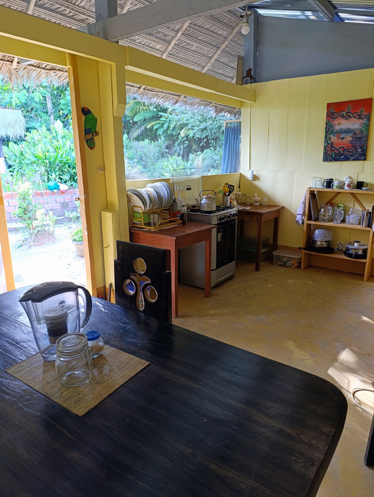 美麗的房子完全由天然材料製成,坐落在俯瞰叢林小潟湖的斜坡上。WiFi。220V。彈簧床墊 步行即可抵達淋浴間和浴室。室內共用休息區。健身房。室內火坑的Maloca。露臺,配有9000L游泳池(天然葉子和藻類) 位於城外叢林中,步行或乘坐摩託車10分鐘即可抵達 您可以在這裡的自然棲息地看到猴子蜘蛛和其他叢林生物