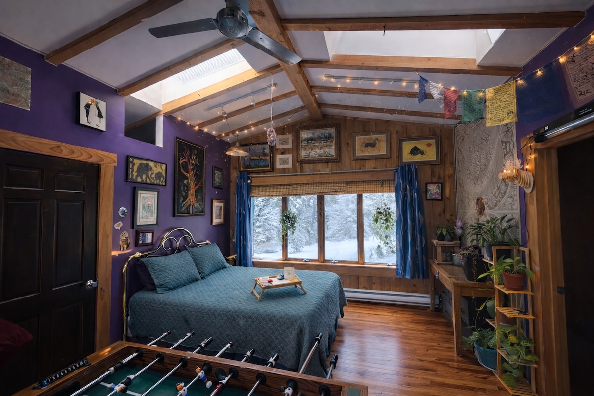 1200平方英尺的Post & Beam 2層穀倉小屋,坐落在18+英畝的物業上,有1250英尺的道路前面通往這個寶石。 Amish木製家具和燃木爐。 二樓開放式閣樓概念提供1張特大床、1張帶2張單人床的推拉床(可睡4人)、1/2間浴室和衣櫃空間。 樓下有廚房、餐廳、客廳和全套衛浴。 房源內有私人公園,配有吊床、排球和籃球場、鞦韆、滑梯和遊戲屋、庭院遊戲(室內和棚屋)、燒烤和火坑。
