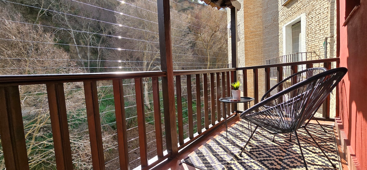 Beautiful apartment with a large private terrace and a panoramic view of Alhambra, the Albaicin, the Sacromonte and the old city. Located in the Albaicin, Moorish style neighborhood with flowery labyrinthes of alleys and medieval squares. The apartment, cosy and confortable, in a traditional home of the Albaicin, is 2 minutes walking from Paseo de los Tristes and Rio Darro, and close to Plaza Nueva, restaurants and tapas bar... It's also very close to the Mirador de San Nicolas.