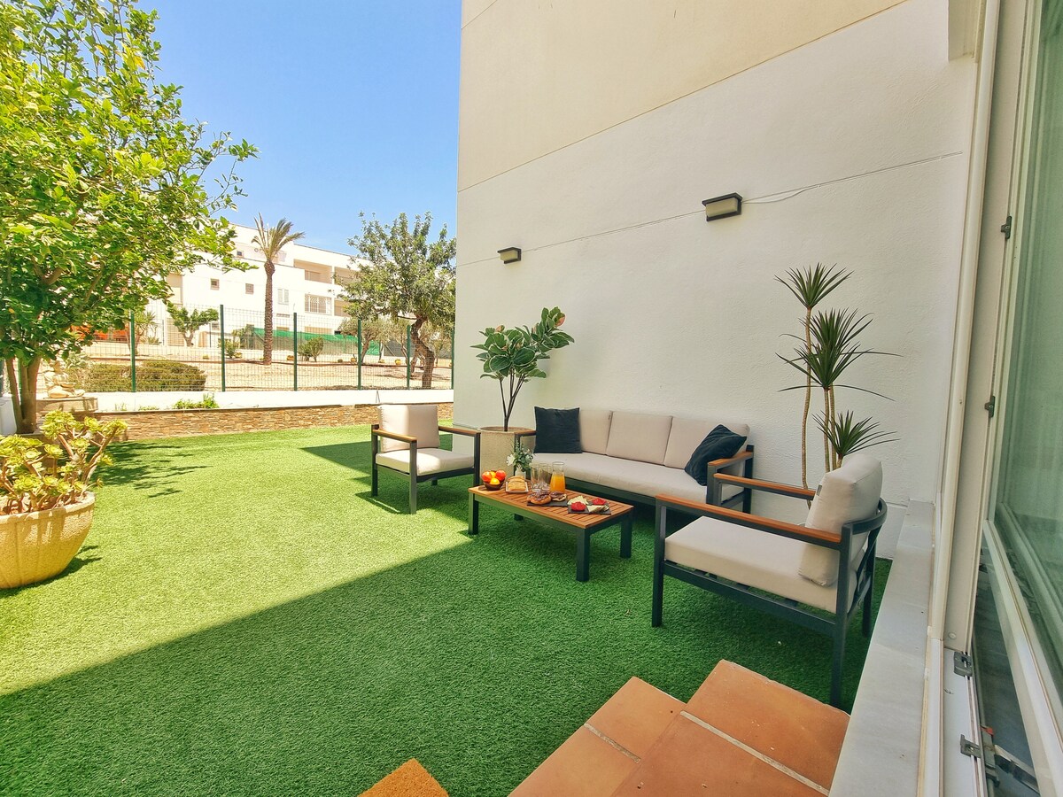 壯麗的公寓,在Cabo de Gata及其海灘旁邊享受幾天的休息和放鬆。 毗鄰高爾夫球場,距離海灘很近。 在房子兩個露臺/花園中的一個上享受日光浴。 它有兩間臥室,主要一間配有浴室、設備齊全的廚房和一間可直接通往花園的客廳。 直接從主露臺/花園進入公共泳池。 私人停車位。600mb光纖WiFi、NETFLIX、空調。