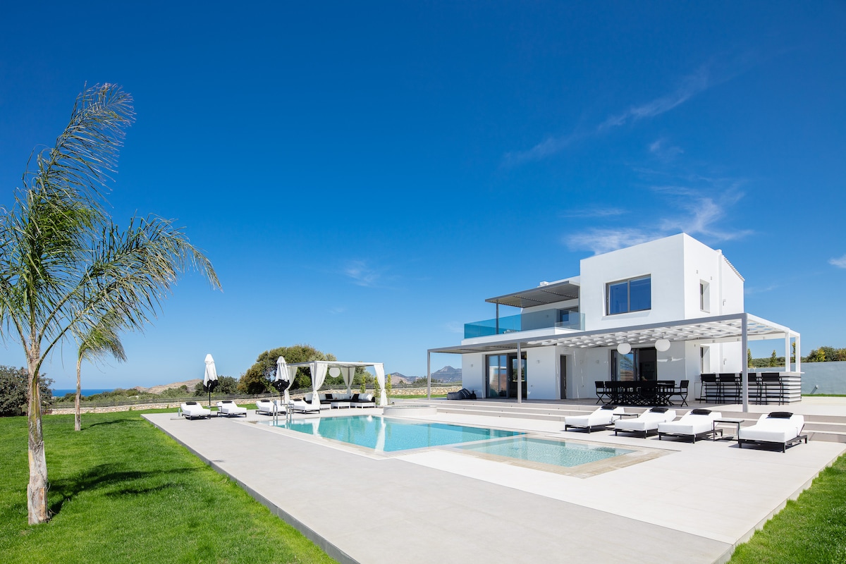 想像一下,在最正宗的地方之一有一個天堂,那裡的舒適家居與寬敞和繁華的荒野相遇。您的親人可以在獨家泳池場地聚會,每個願望都只需一個電話就能實現。這是一個精緻的克里特島瑰寶,配有私人泳池、加熱的五座水療按摩池、兒童泳池、配有健身器材的健身房、戶外遊樂場、迷你足球場、排球場等,使其成為遠離一切的理想度假屋。