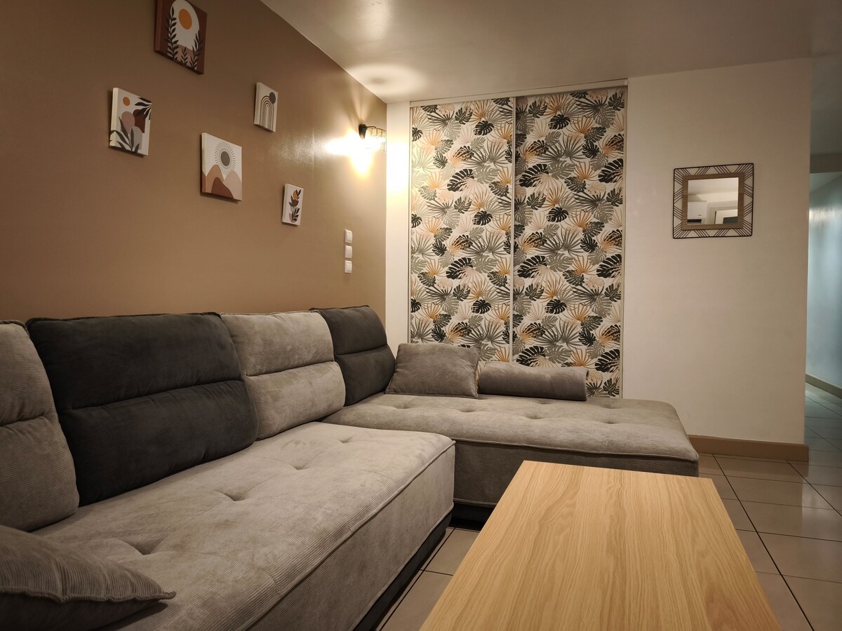 整套 50 平方公尺的公寓:非常舒適的現代化 T2 房,適合 2 至 4 人入住(非常適合家庭或 3 名成人),有遮蔭的陽台……位於聖皮埃爾潟湖的門口……地理位置優越,靠近海灘/海邊/城市/山區/觀光景點…… 毗鄰著著名的聖皮埃爾星期六早市、海灘、商店、港口、夜生活......自行車道、沙灘排球、風箏衝浪......前往荒野南部和火山很方便 設備齊全/WiFi