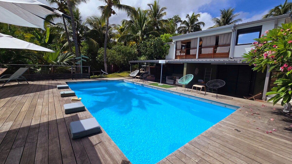 Quiet detached T2 in Saint-Pierre (Ligne des Bambous), nestled in a lush tropical garden. Heated saltwater pool shared only with the owners, Hervé & Sandrine (no other guests). Private parking, Wi-Fi, dining area. Two 160 cm queen-size beds, hotel comfort, spotless and well cared for, very comfortable bedding. Ideal for 2 to 4 guests (family or two couples). Perfect base for beaches, hikes and the Wild South.