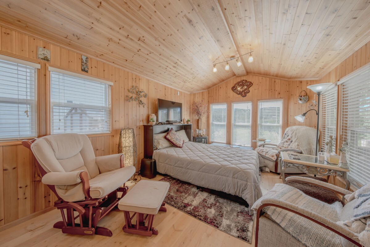Welcome to Tobacco River Ranch! With more than 450 acres adjacent to State Forest, and nearly two miles of river running through our property, endless adventure awaits! The Ranch Hand cabin is a guest favorite with a comfy queen bed and ceiling to floor windows to star gaze from your bed, or enjoy the view from your private deck overlooking the river and mountains. We provide tubes for floating the river and bike for rails to trails.