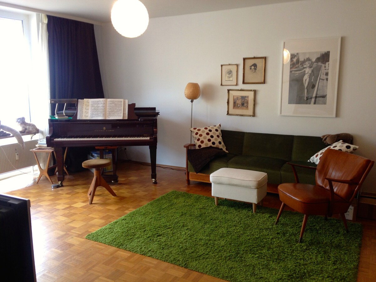 中央、安靜、光線充足! 外面醜陋,內部漂亮舒適!😄 我們住在隔壁。 三角鋼琴、Tempur床(1,80)、電梯、大陽臺,早晨陽光充足。步行距離:市中心、萊茵河、巧克力博物館、大教堂:15-20 分鐘。 超市、餐廳等: 10-15分鐘。 Köln Messe :地鐵3站, 15分鐘。 注意:價格加上科隆市政府收取的5%「文化稅」! 僅限非吸菸者。 ❤️