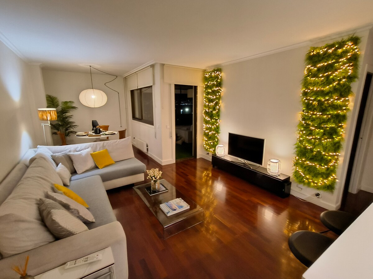 Este maravilloso apartamento , te hará disfrutar como nunca de tus vacaciones gracias a sus vistas a la ría, zonas ajardinadas y de descanso, piscina de agua salada, gimnasio, campo de futbito , parque infantil, servicio de conserjería 24h y parking en el propio edificio. Desde su terraza podrás ver toda la Ría en su esplendor y sentir el latido de la ciudad. A 7' andando de la zona 0 de ocio y restauración, 800 m. del centro y 300 m de autopista y tren, 500m del Halo y 10 Km del Aeropuerto.