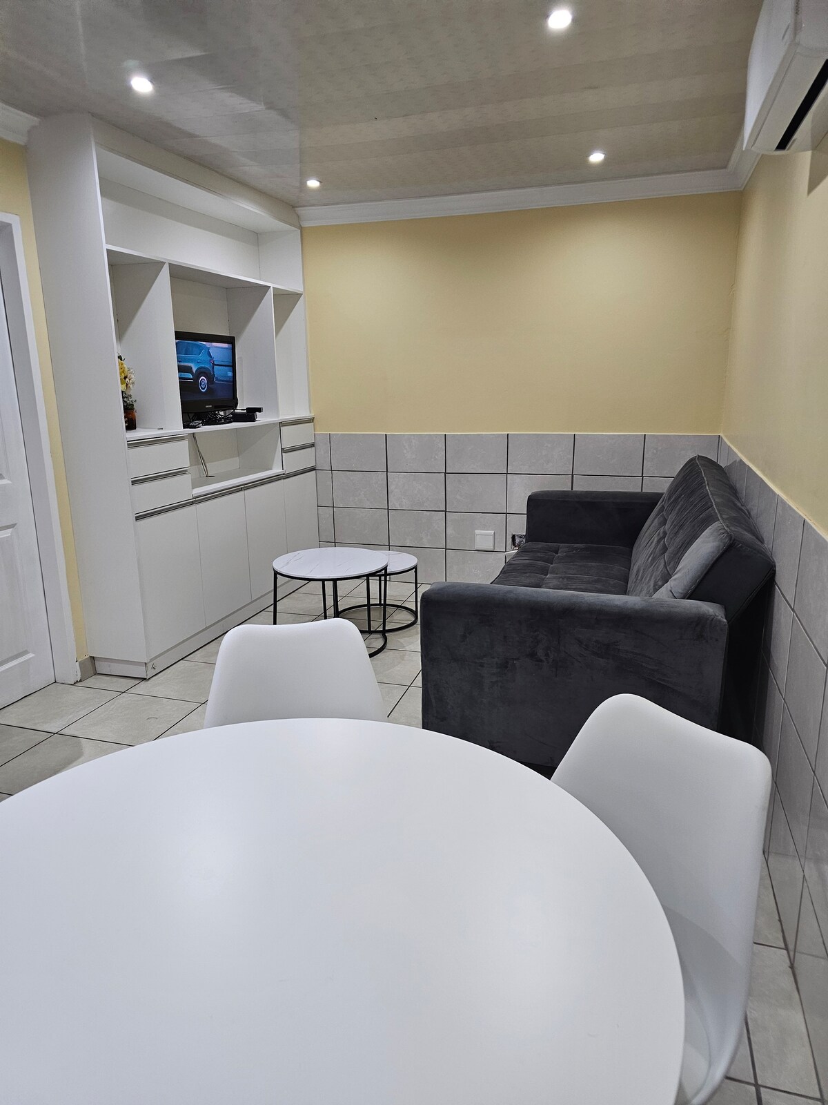 Fully equipped garden flat situated in Pretoria moot area. Wi-Fi, Open View TV, air conditioner, outdoor lapa, swimming pool, home gym and beautiful garden. Walking distance from Eugene Marais Hospital, fast food franchise and grocery stores near by. Under cover parking for one vehicle available, this unit is also pet friendly limited to 2 socialized dogs. Weekly cleaning done on all extended bookings. The swimming pool and trampoline is used at own risk. Pool will be covered during winter.