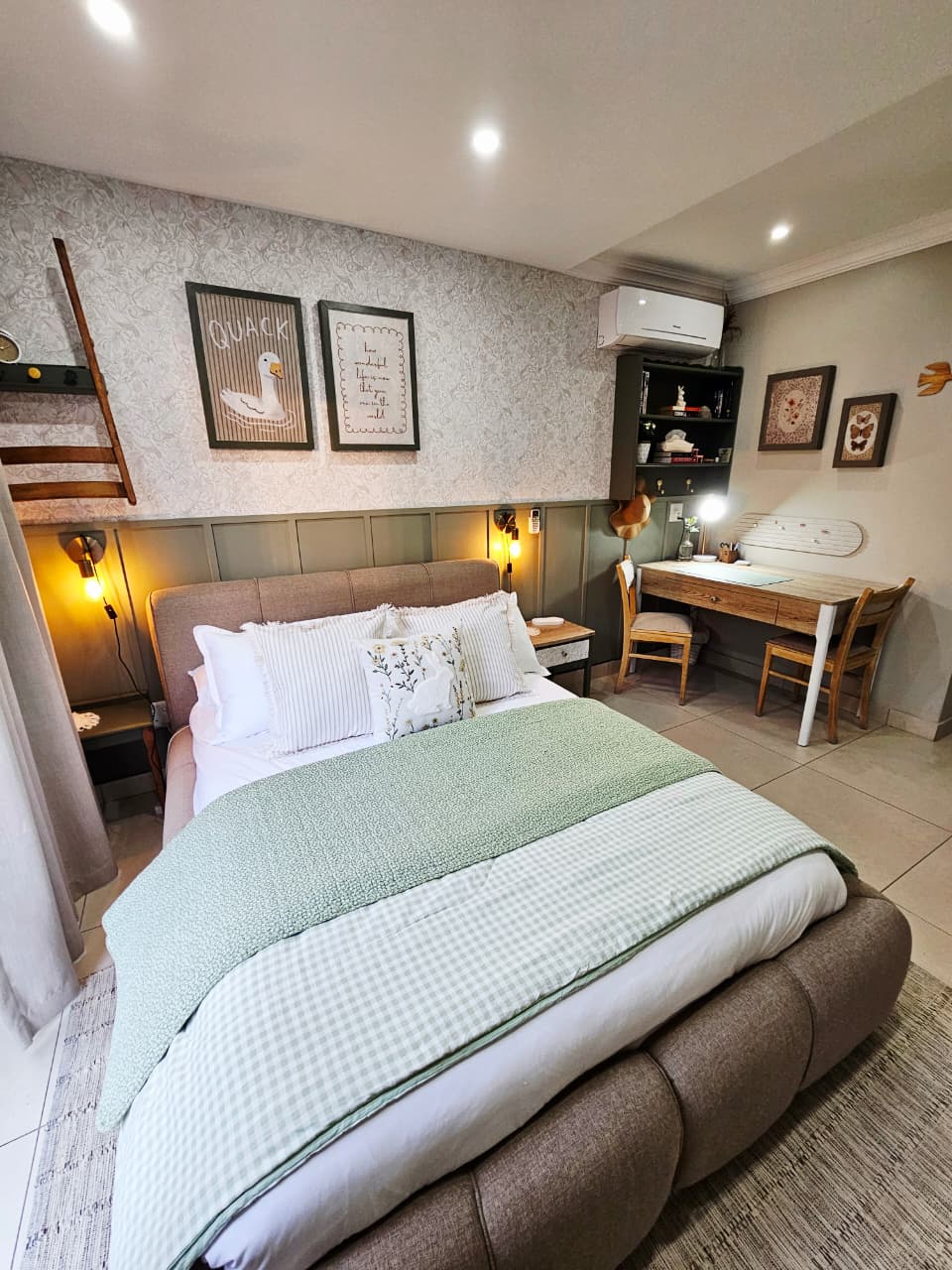 Discover tranquility in Pretoria Villieria at our elegant self-catering garden cottage. This charming one-bedroom sanctuary features two single beds (extra long)/ King and a stunning green-themed floral bathroom with a shower. It features an open-plan kitchen with a 2-seater couch to get you chillen. Unwind in the outdoor barbecue area and enjoy the lush green garden, perfect for relaxation. Explore nearby attractions, parks, and eateries, and immerse yourself in the vibrant beauty of Pretoria