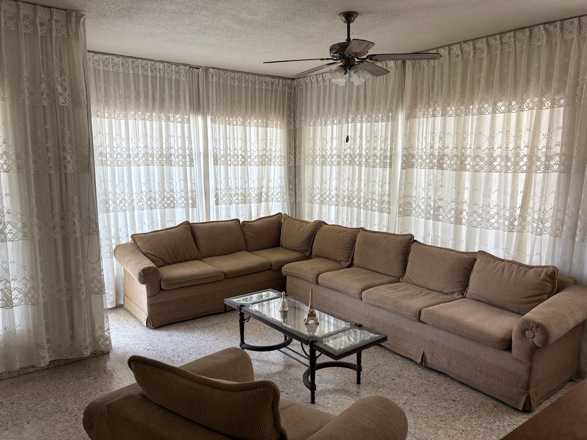 入住這個寬敞的空間,遠離煩惱,非常適合商務和家庭旅行 房子提供過濾器的飲用水、3間臥室、2間配有床的臥室,您可以在那裡休息,其中一間房間有空調,第三間臥室有沙發床和電視、1間全功能衛浴、設備齊全的廚房、客廳,地理位置極佳,步行即可抵達所需的一切設施。 我們會開立發票。