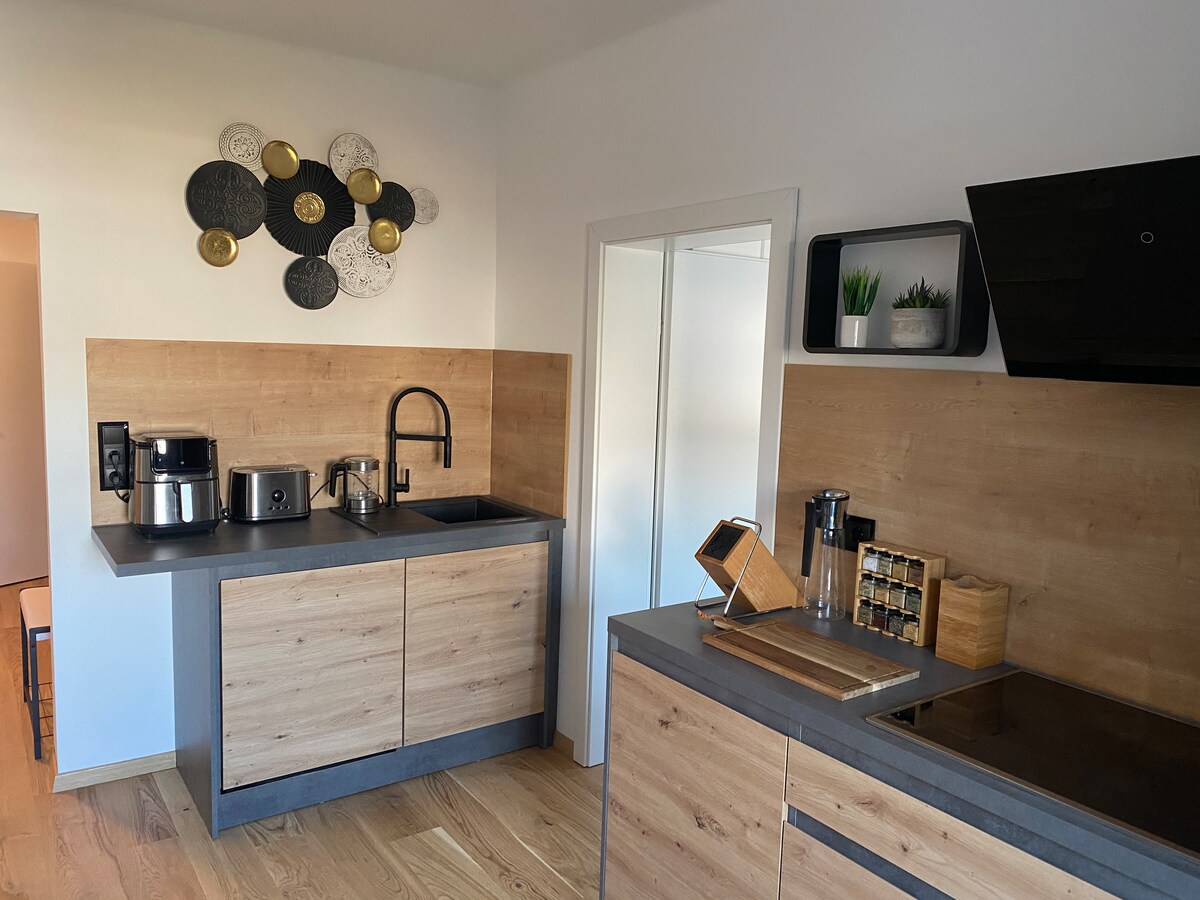 這間45平方公尺的美麗公寓位於格拉茨旅程的完美位置。步行即可抵達主廣場,步行 8 分鐘即可抵達格拉茨中央火車站。 公寓是全新的,並配備了現代化的設施。配備彈簧床、可伸縮沙發床、洗衣機、吸塵器、餐具、熨斗和熨衣板、配備洗碗機、水壺、烤麵包機、咖啡機的大廚房……