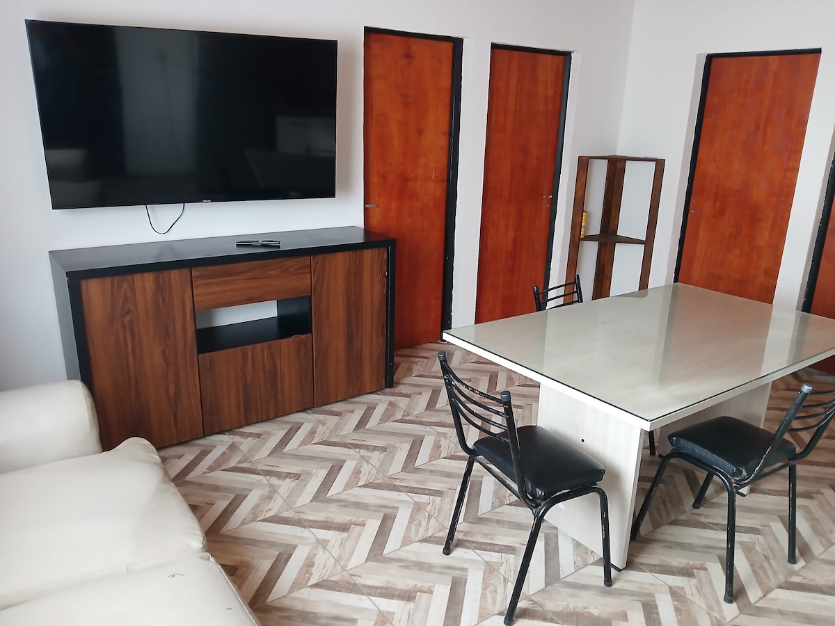 Monoambiente moderno y luminoso en pleno centro, ideal para dos personas. Cuenta con cama matrimonial、WiFi、智慧電視、cocina equipada、frigobar y patio con césped。 距離航站樓3個街區,靠近廣場和商店。 市中心明亮現代化的單間公寓,非常適合兩人入住。 配有雙人床、WiFi、智慧電視、設備齊全的廚房、迷你冰箱和草坪露臺。 距離巴士站僅三個街區,靠近商店和廣場。