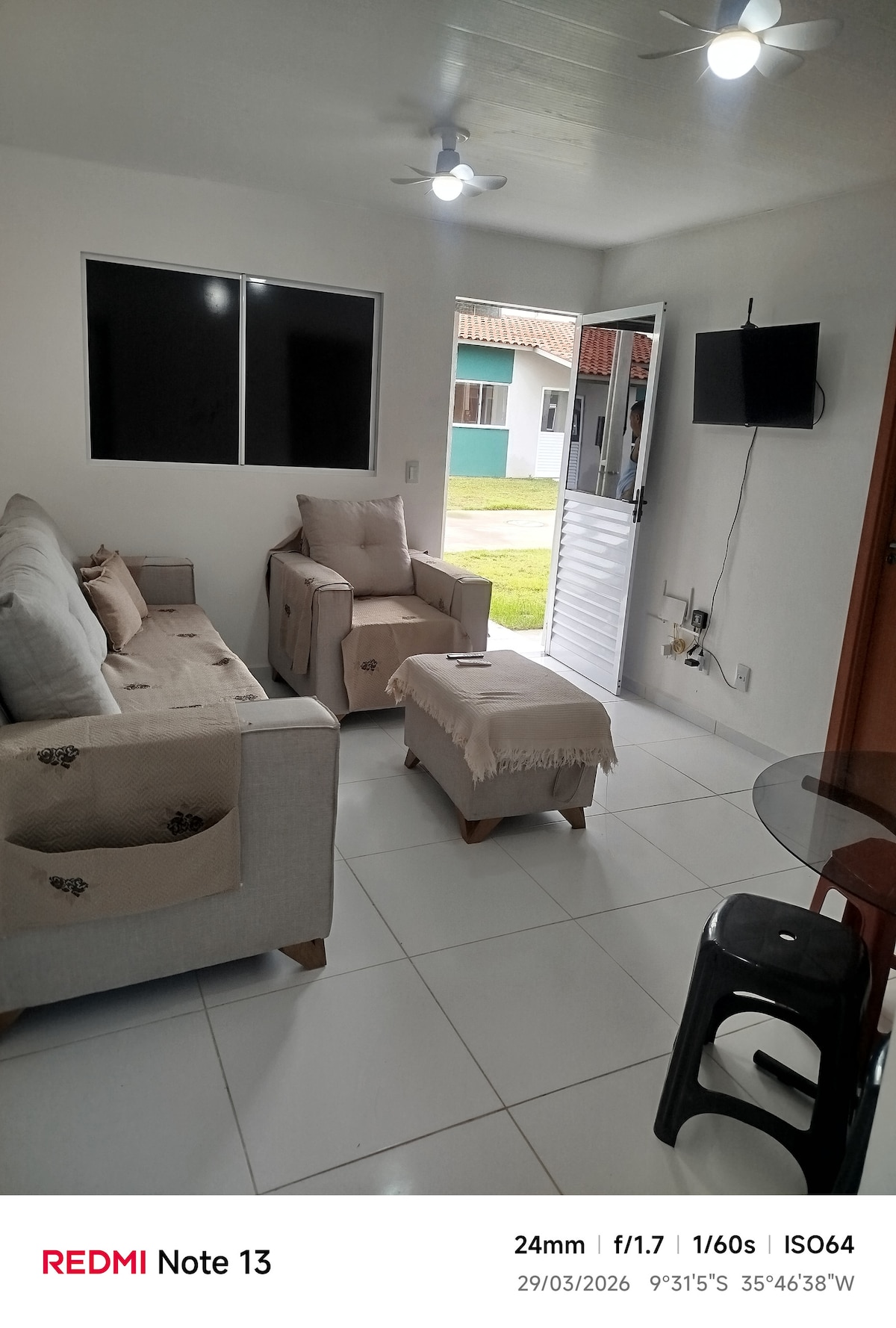Casa em condomínio privado com câmeras de seguranças, área de lazer externa arborizadas e praças, parquinho e piscina. Próximo ao aeroporto e universidade Federal de Alagoas. Um espaço inteiro para sua família, 2 quartos com cama de casal e um colchão de solteiro ,2 ventiladores e ar condicionado em um dos quartos, varanda externa e área de serviço com máquina de lavar, cozinha com utensílios, Vagas de garagem dentro do condomínio.