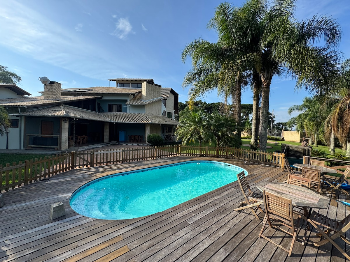 Desacelere, respire fundo e sinta-se em casa neste refúgio aconchegante no meio da cidade. A “Casa de Novela” acomoda até 16 pessoas, perfeita para reunir quem você ama. Curta a piscina, momentos na churrasqueira e noites especiais na lareira externa, com marshmallows e vinho. O espaço ainda conta com tanque para pesca, trazendo tranquilidade e conexão com a natureza. Aqui, cada detalhe convida você a relaxar e criar memórias inesquecíveis.