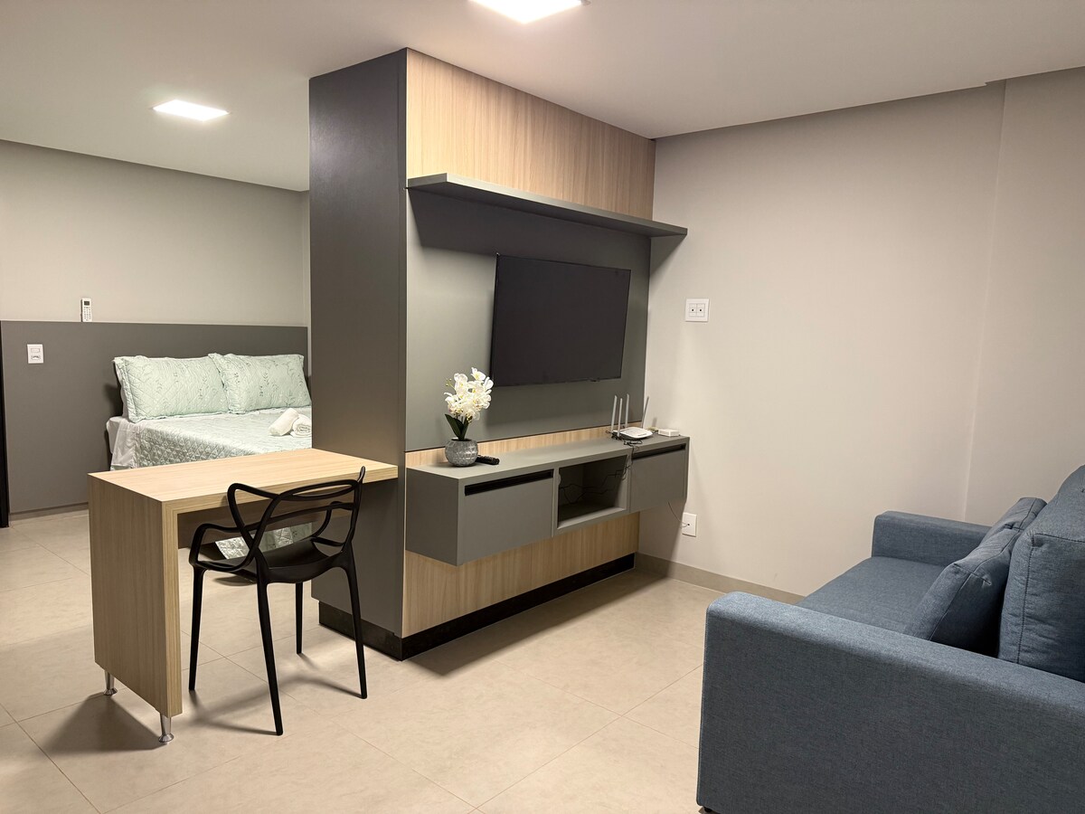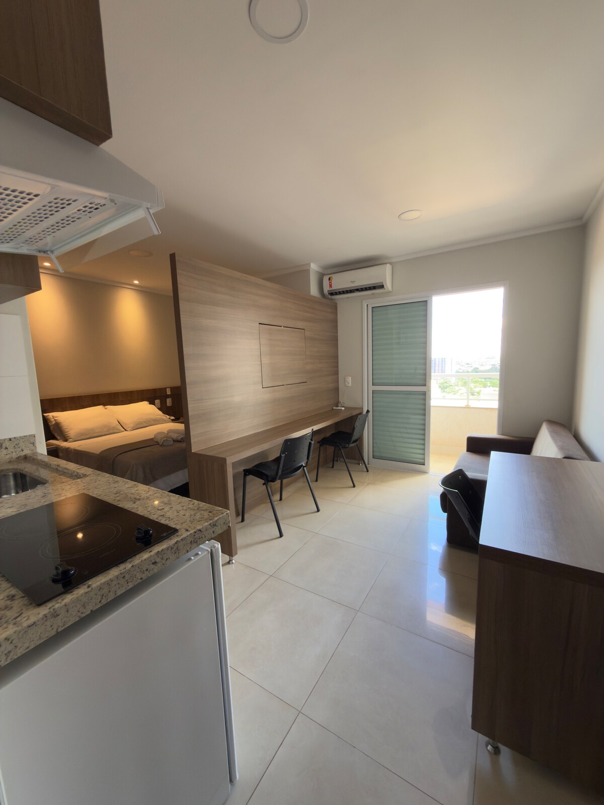 入住全新建造的全套私人單間公寓,配備舒適住宿所需的一切用具,包括全新的優質廚房用品。 大樓內有24小時禮賓服務、健身房、遊戲室、派對室和便利市場。 陽台景觀迷人。 位置優越,靠近UNIRV , 附近有教堂、超市、廣場、餐廳和各種設施。 安靜的街道。