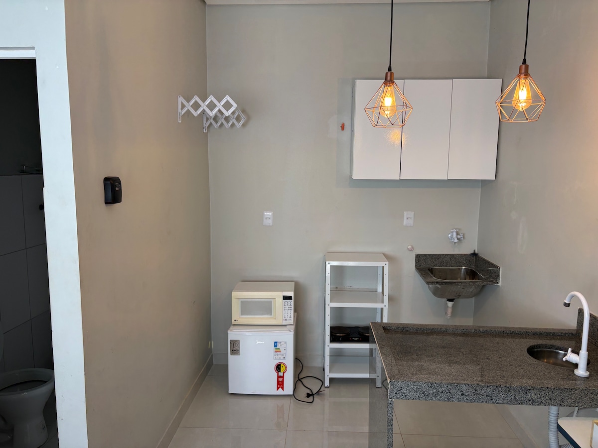 配備家具的公寓,小巧但舒適,位於 Rio Verde 的高級社區 Residencial Interlagos。 有單人箱式床 + 一張額外的床墊。 可供兩人入住。我們提供床單和個人用肥皂。 我們不會提供毛巾。如有需要,可在公寓內透過 Pix(包裝上有 QR 碼)以 R$20.00 的價格購買新毛巾。 住宿結束後,毛巾完全屬於您,您可以隨身攜帶。