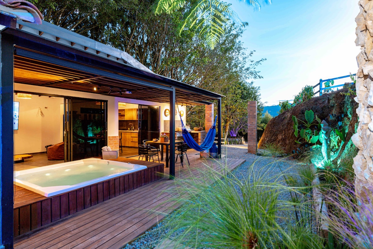 紫水晶,以手工方式建造。 這是大自然送給你靈魂的禮物,一種溫暖的體驗。 在營火旁享用一杯咖啡的美味蒸汽口感。 也配備了遠距工作的設備。 我們的巷道提供許多安全的路線,周圍有美麗的風景,適合步行、慢跑、騎自行車等活動。 距離José María Córdova機場15分鐘路程。 靠近安蒂奧基亞東部的旅遊景點。