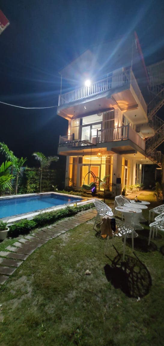 這座寬敞的8100平方英尺房源坐落在聖恆河寧靜的岸邊,可欣賞令人嘆為觀止的森林和河景。 有5間客房,每間都有自己的浴室,最多可舒適入住10位房客。 在客廳享受私人泳池、鬱鬱蔥蔥的花園和65英寸索尼LED電視。 遠離城市喧囂,是放鬆身心的完美場所。 廚師可按需提供服務,以提升您的住宿體驗。 在一個非凡的度假勝地體驗寧靜、奢華和自然。