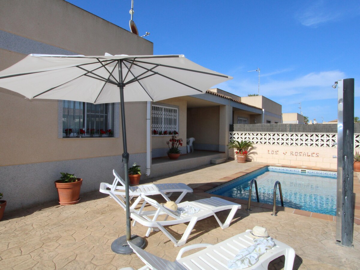 Beautiful house with private pool and a large garden. Large living room with an American kitchen, a laundry room and a big bathroom with shower and a separated toilet. Three bedrooms, one with a double bed, and two rooms with two single beds. All rooms have a large closets and ceiling fans. Terrace in the front of the house with garden furniture and barbecue. Private swimming pool with hammocks. Surronded by a fence that confers privacy. Private parking in front of the house.