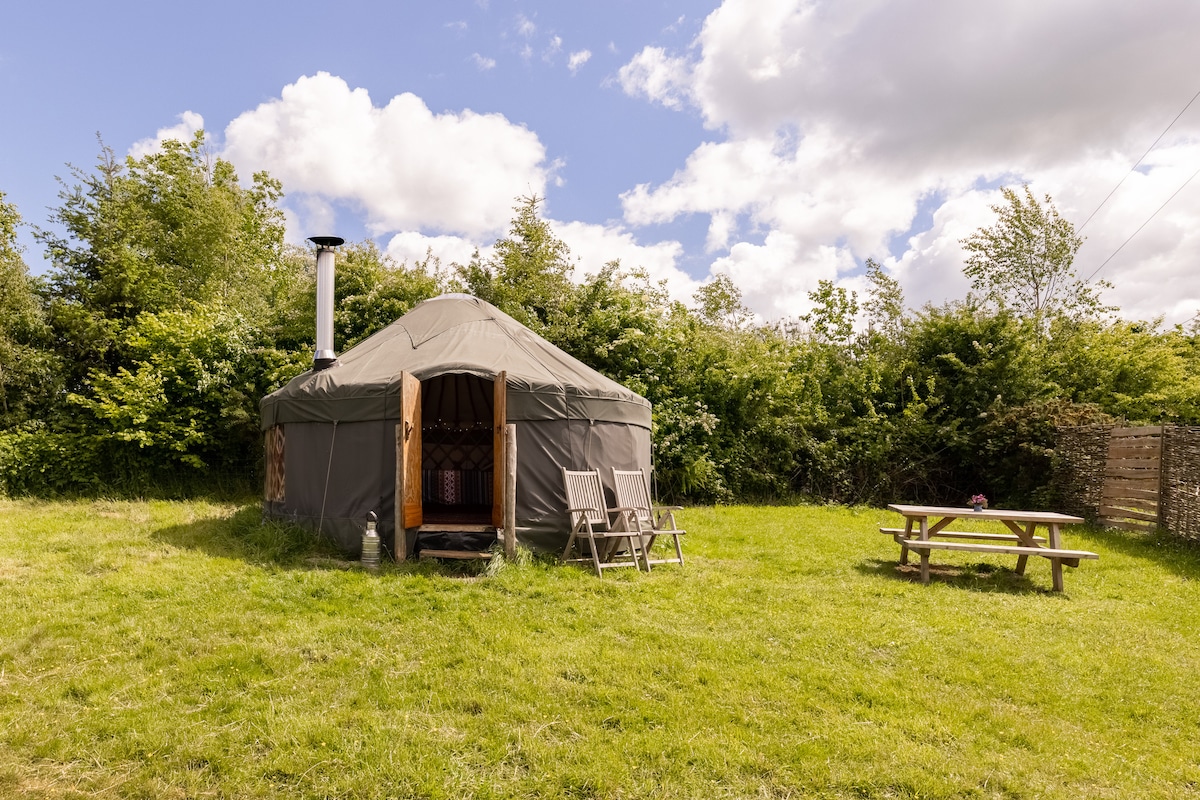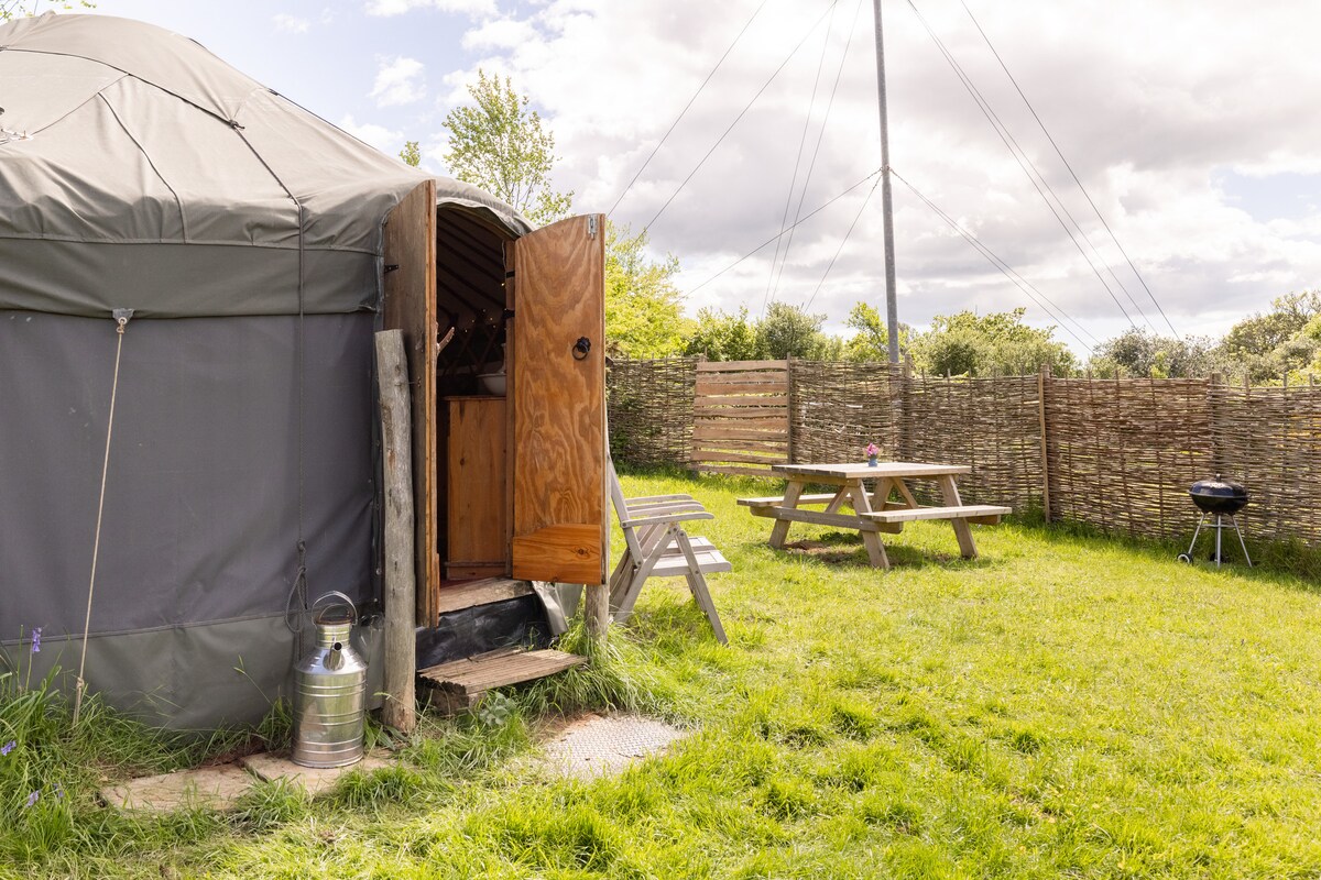 Redwood坐落在林地中,是我們舒適的康瓦爾蒙古包。美麗浪漫和溫馨,配有大雙人床、燃木爐、火坑、吊床和您需要的一切,讓您的住宿愉快。毛氈內襯,提供額外的溫暖和隔熱,並配有冬季保溫被。我們是德文郡最佳豪華露營的Muddy Stilettos獎得主,我們提供雙人租賃,我們有一個公共用區域,有巨人椅子、披薩烤箱和池塘。來Yonder Meadow漫步。放鬆、重新連結、放鬆。
