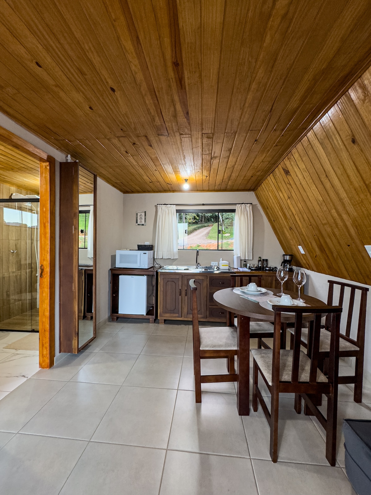 @oranchodacolina 小屋提供: 設備齊全的廚房、微波爐、電烤箱、攪拌機、烤麵包機和空氣炸鍋。我們還提供鹽、糖、橄欖油等必需品。 超級舒適的雙人床,配有頂級床單和浴巾。冷暖空調,全年任何季節都能提供舒適的溫度。 浸泡式浴缸,配有浴鹽。在浴室、淋浴間和煤氣加熱的水龍頭,可欣賞美麗的自然景觀。