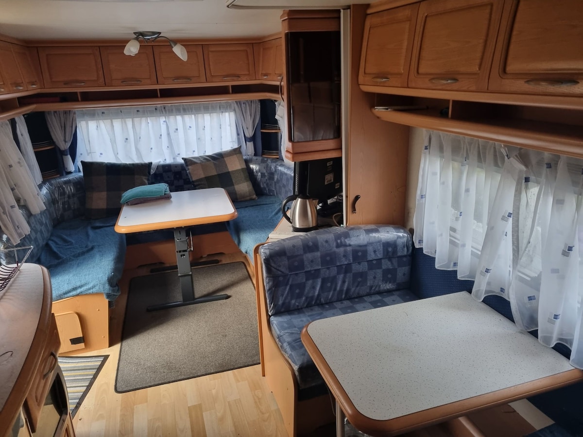 the little garden caravan is located in the grounds of our family home. it's suitable for travellers looking for clean and cosy budget accomadation without the frills. it has off road parking. double bed, microwave, kettle, toaster and fridge. wash room facilities are located in the main house and are open from 6am till 23.00pm. the caravan has a toilet that is suitable for urine only. please ensure this will meet your needs before placing your booking.