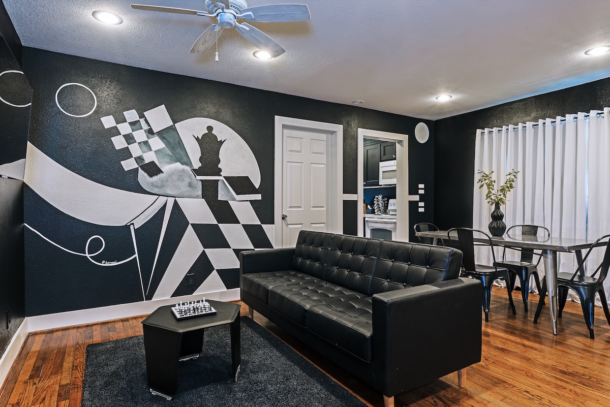 這間全新現代化的單間公寓位於River Oaks/Upper Kirby的中心,距離Rice Univ、TMC、市中心、博物館區、Daikin Park、Toyota Center、NRG和Galleria僅幾分鐘路程。 步行即可抵達Trader Joe 's、Target、Starbucks、HEB和Whole Foods。 從餐車到牛排館,有很多外出用餐的選擇! 走進來,您會感到賓至如歸,安全、溫馨、舒適!