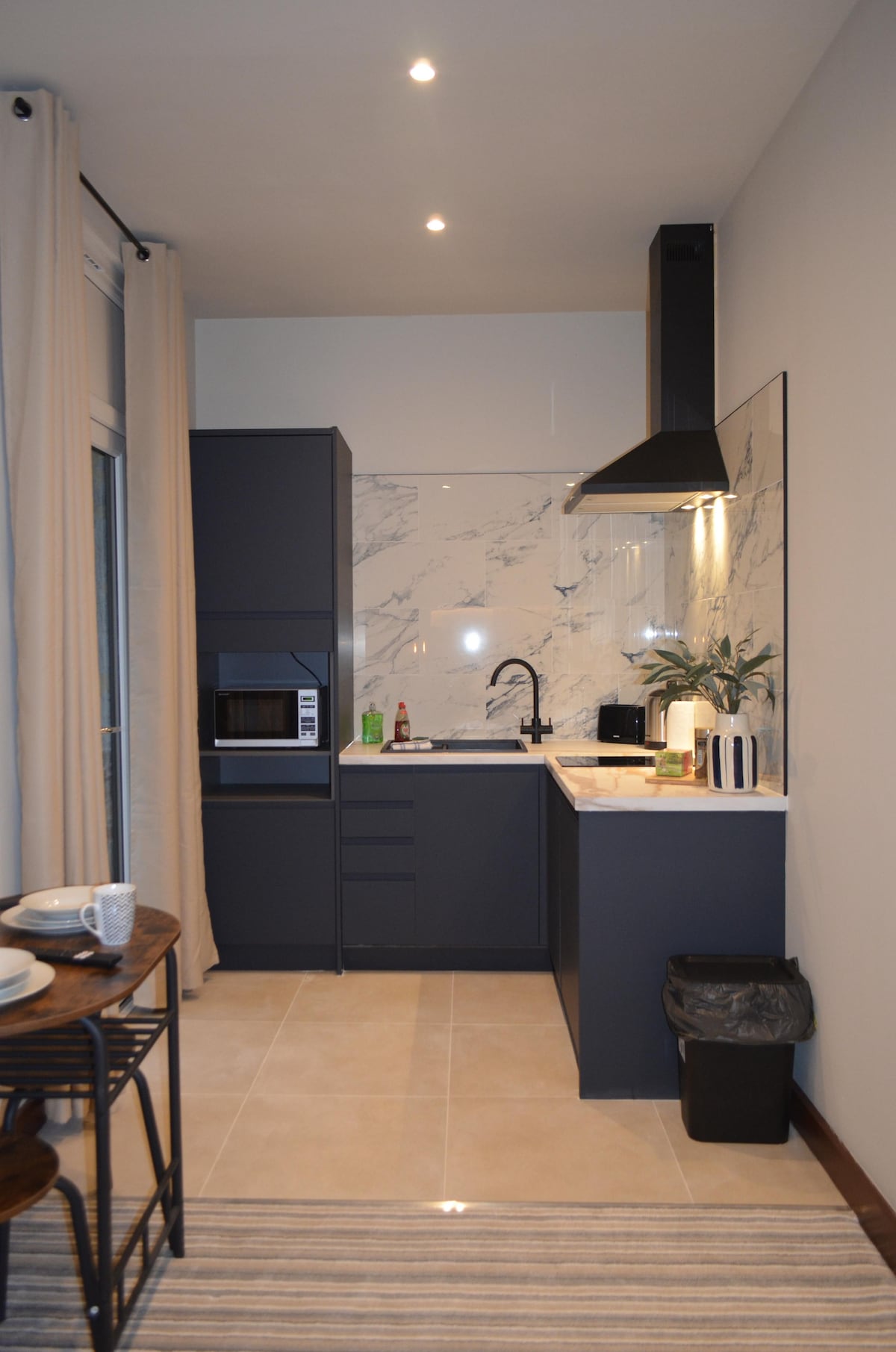 Nightingale是一間自給自足的單間公寓,擁有美麗的拱形天花板,配有裸露的樑、原始的地板和磚砌。 它還設有一個凸起的廚房區,並在潮濕的房間裡走。 起居區域包含配有Netflix的平面電視、配有配套扶手椅的天鵝絨沙發和黃銅咖啡桌。 睡眠區域有一張1.8米寬雙人牀,公寓還有私人走廊和樓梯。