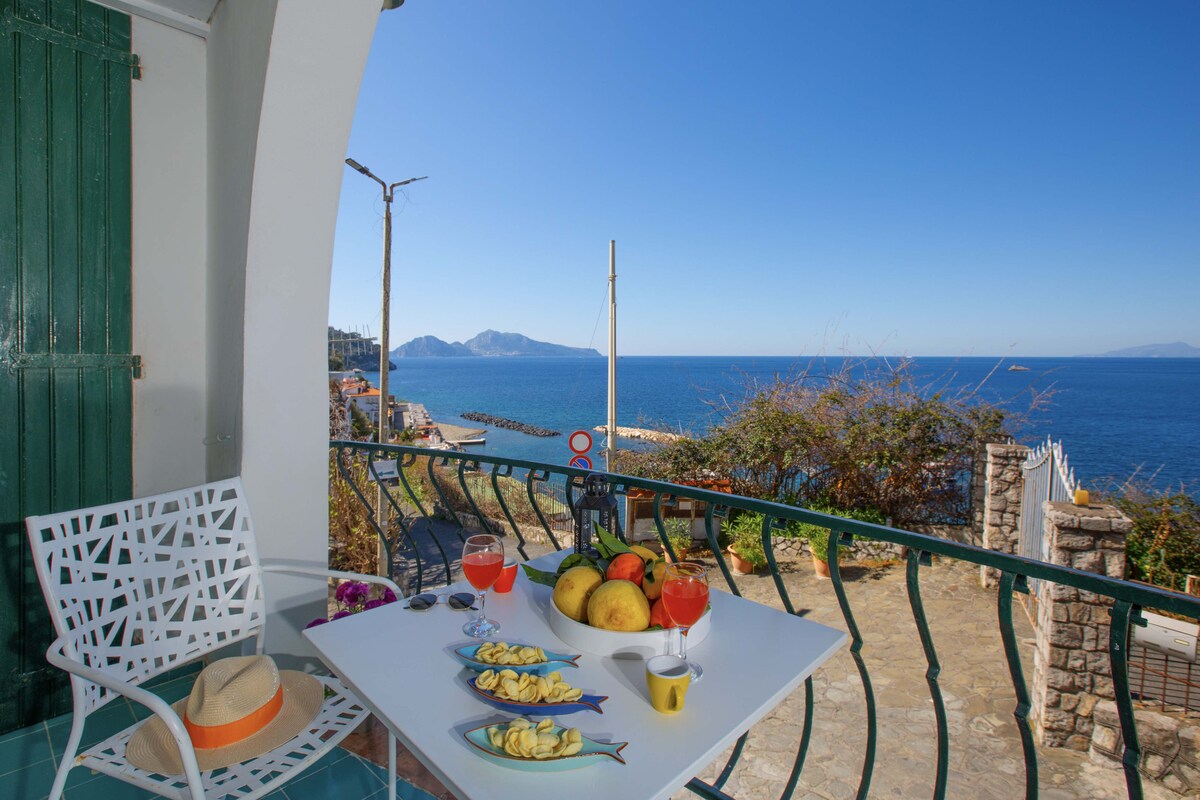 兩間客房公寓,配有浴室,位於私人建築物一樓(無電梯) ,完全改造,配有現代風格、貴重家具和配件、全套空調。 從露臺和公寓的許多窗戶(浴室除外)可欣賞卡普裏和那不勒斯灣的迷人海景。 位於市中心,距離索倫託海岸典型的安靜村莊Massa Lubrense主廣場10公尺,距離索倫託僅5.5公裏,距離波西塔諾18公裏
