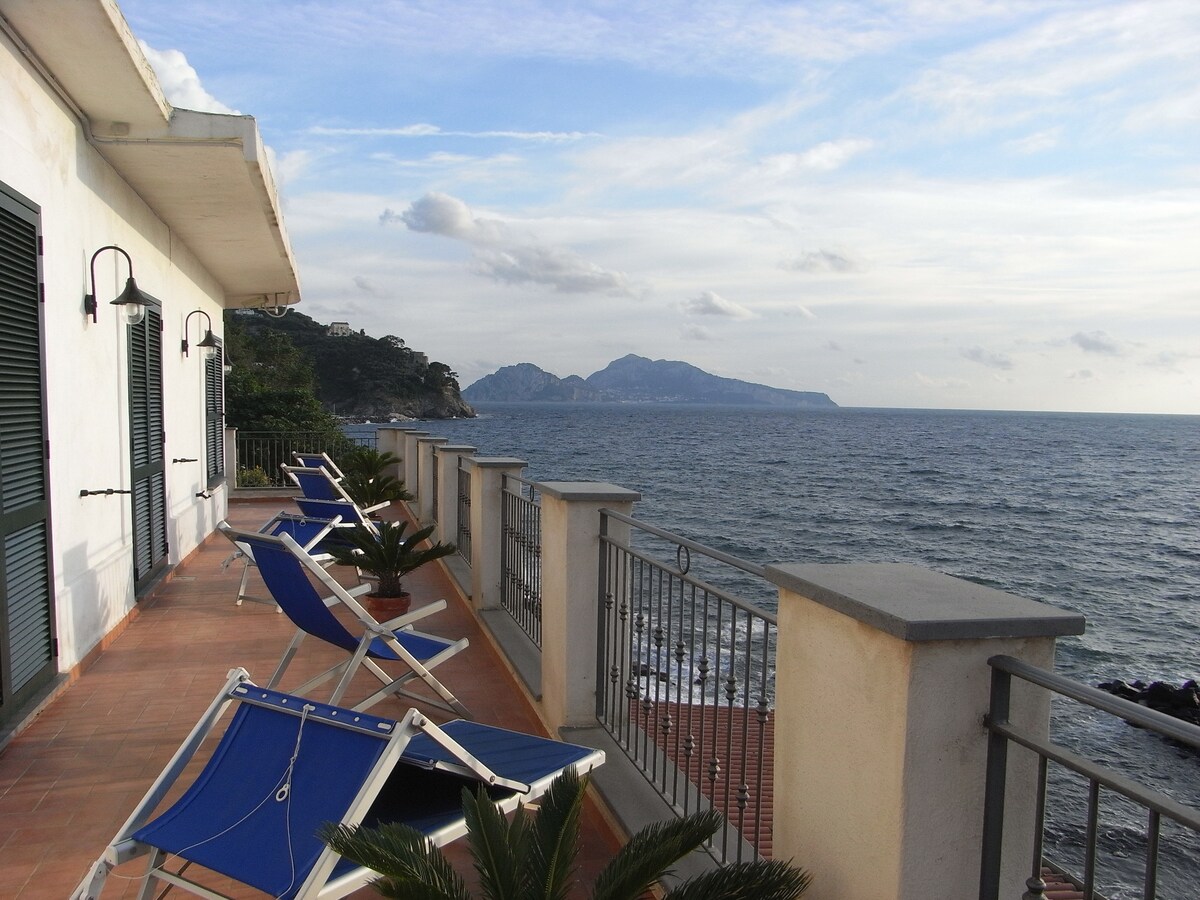 Recently renovated holiday home, it enjoys a breathtaking view of Capri and Ischia. Ideal place to relax away from the chaos of the city. It has bright rooms with a view equipped with all comforts. Terrace in front of the kitchen ideal for breakfasts or dinners by candlelight. Solarium equipped with deck chairs, sun loungers, table with chairs, shower all overlooking Capri.It is a few km from the beach, from the center and from all the attractions of the Sorrento and Amalfi coasts