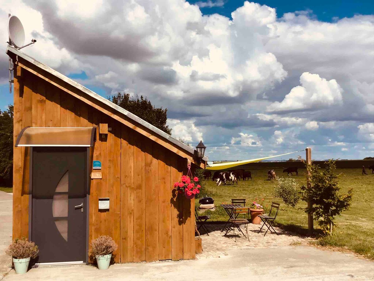 au coeur de ma ferme bio , venez respirer l air de la campagne a deux pas des villes de douai ,cambrai ,arras et lens . le chalet se compose d une piece unique avec salon ,coin cuisine et deux grand lit la sdb est equipée de wc suspendu,evier double